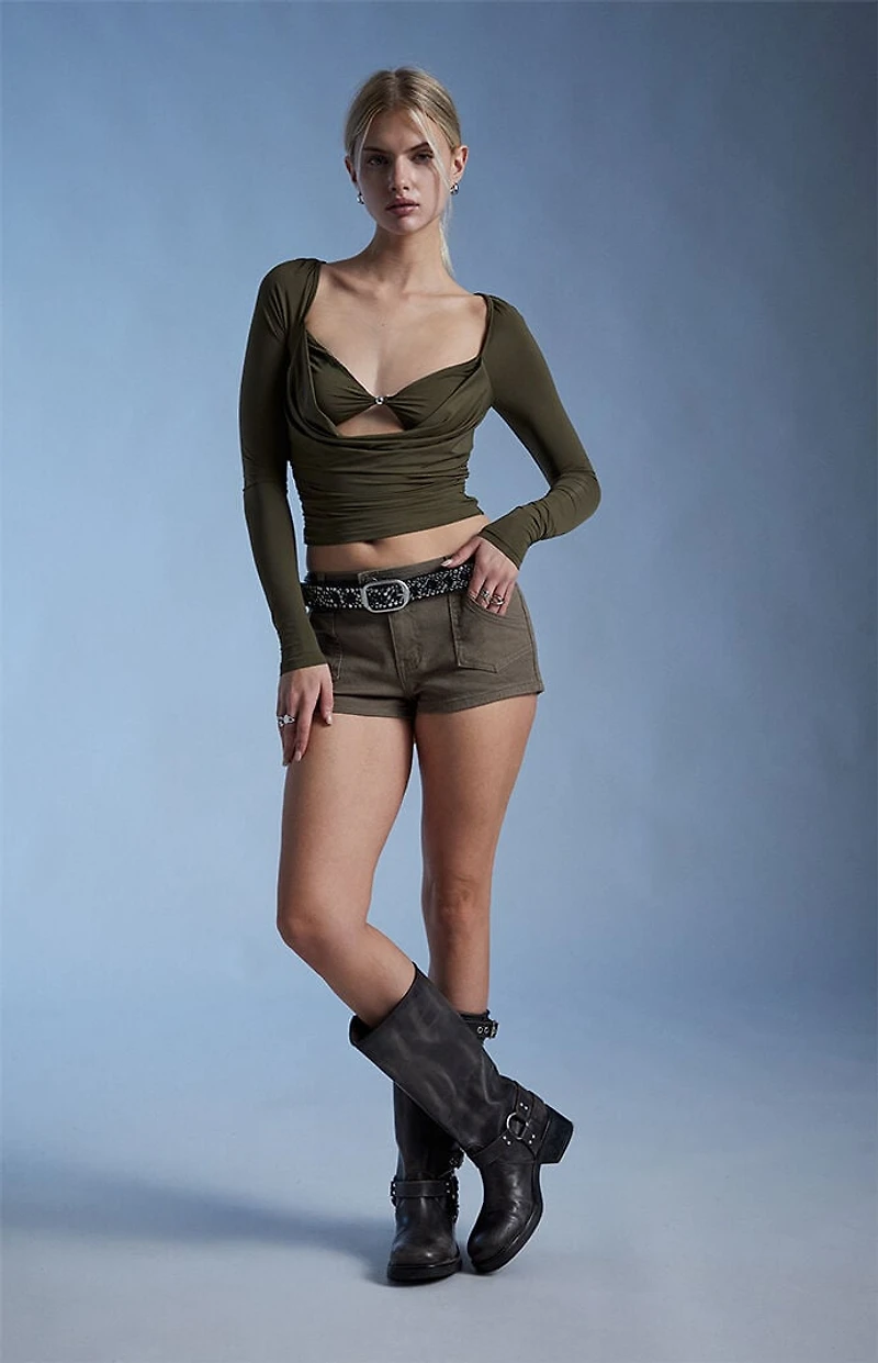 The Andrea Bead Center Long Sleeve Top from Third Charm blends daring design with a feminine edge for a statement-making look. This slim-fit top features long sleeves, a ruched cutout front with beaded detailing, a V-neckline, and a tie-back closure for a bold, fashion-forward finish.