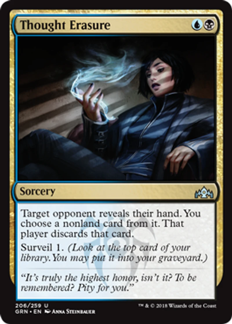 Target opponent reveals their hand. You choose a nonland card. That player discards it.Surveil 1