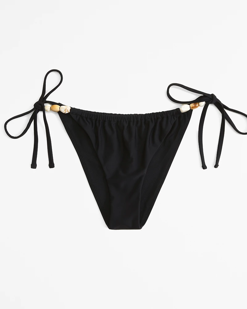 Our new high-leg cheeky coverage bottoms in our core nylon fabric, featuring adjustable tie straps on the side and on-trend bead details.