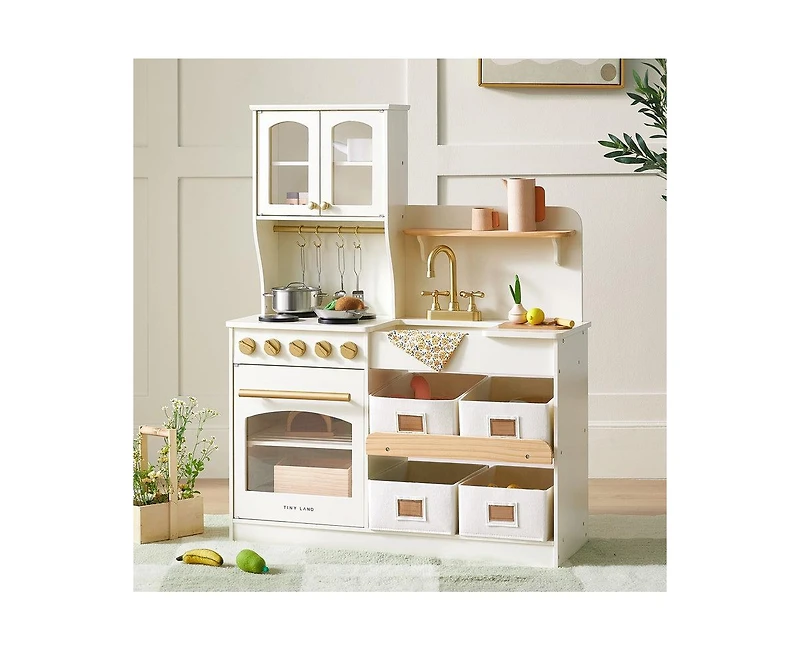 Tiny Land Wooden Play Kitchen with Storage for Creative Toddlers