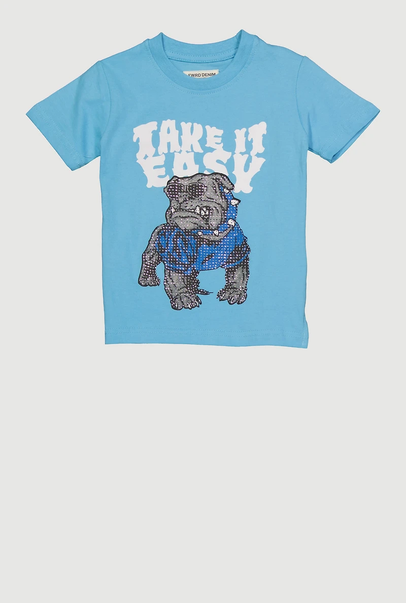 Toddler Boys Rhinestone Take It Easy Dog Graphic Tee in San Juan, PR