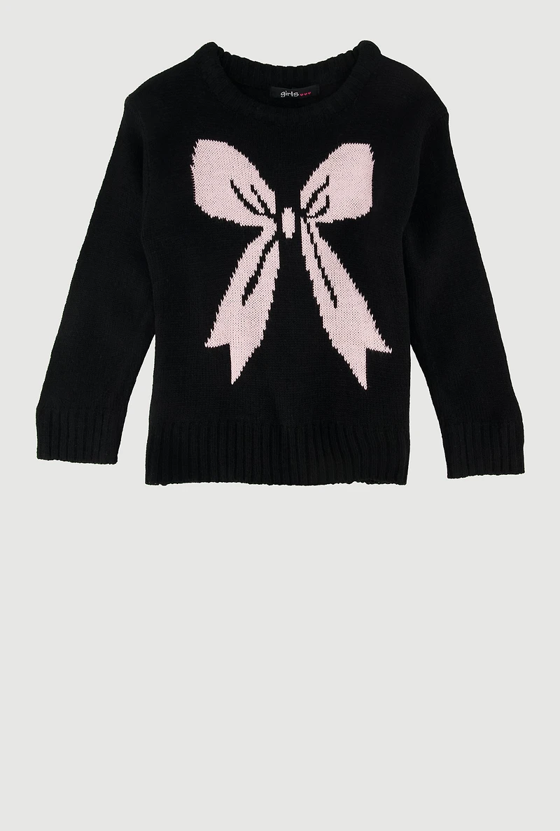 Toddler Girls Bow Graphic Long Sleeve Sweater, Black, Size 3T