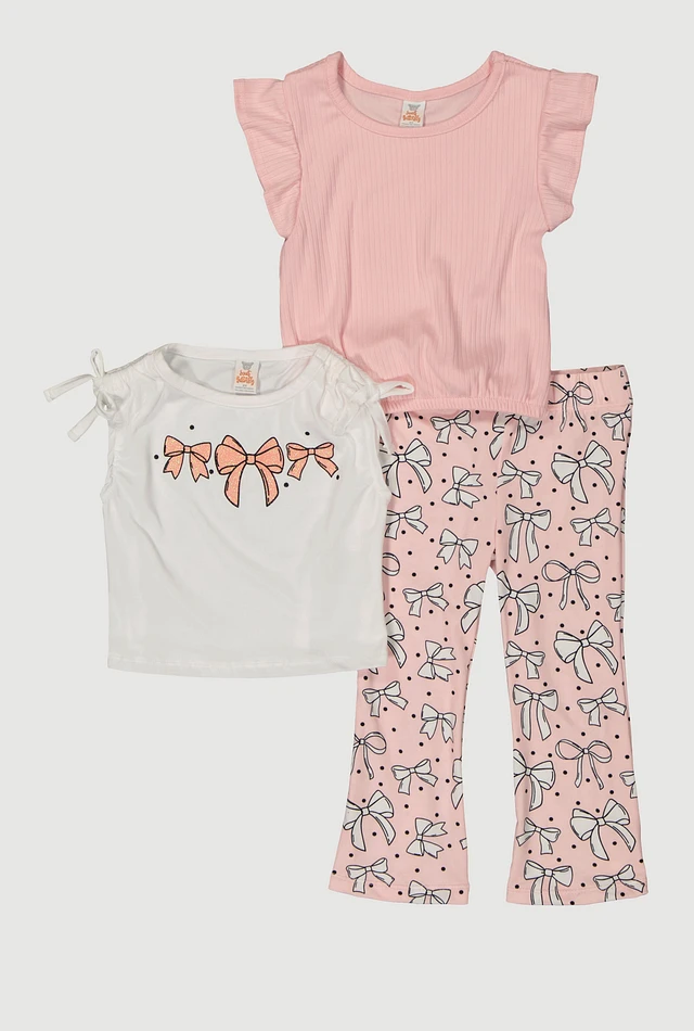 Toddler Girls Bow Graphic Tees and Printed Pants, Pink, Size 4T