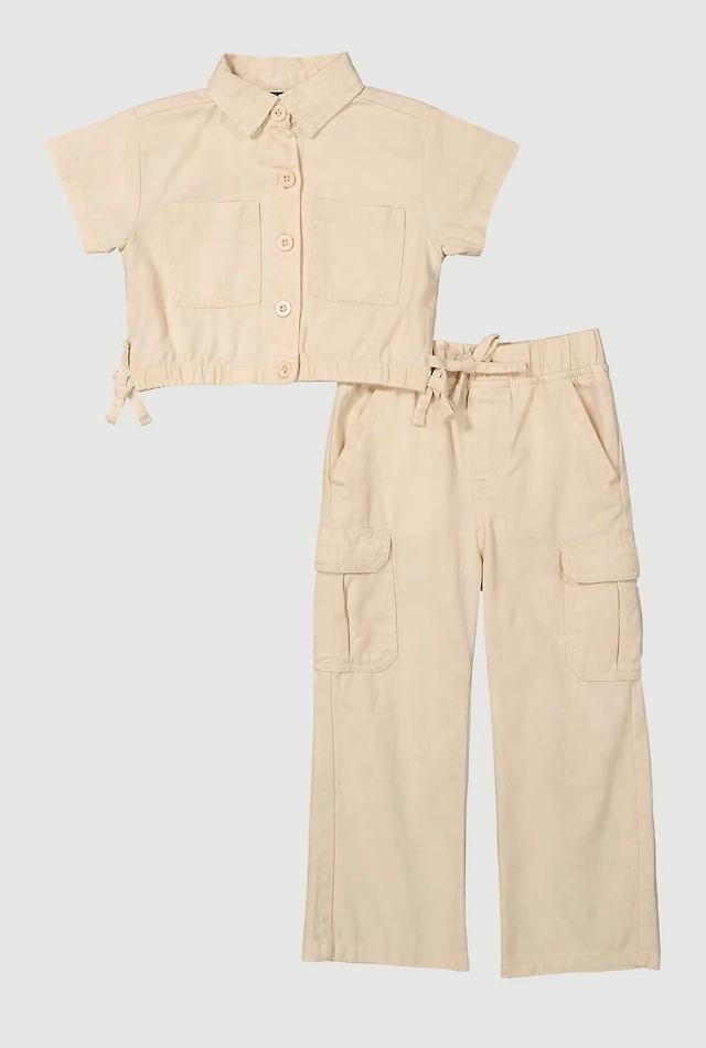 Girls Button Front Shirt and Cargo Pants
