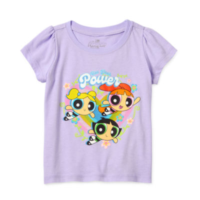 Little & Big Kid Girls Round Neck Short Sleeve Regular Fit Powerpuff Graphic T-Shirt