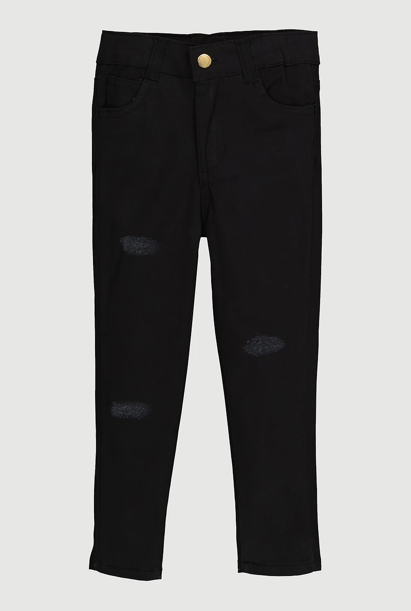 Toddler Girls Distressed Solid Skinny Leg Chinos