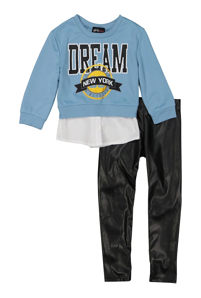 Toddler Girls Dream New York Graphic Sweatshirt and Leggings, Blue, Size 2T
