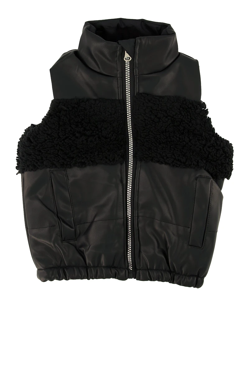 Toddler Girls Sherpa Detail Faux Leather Vest