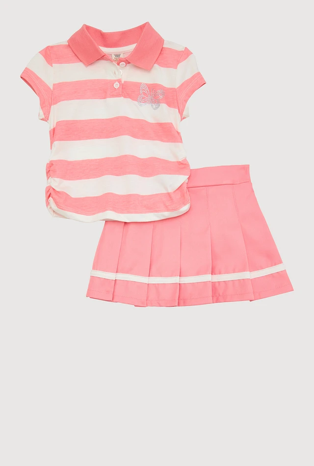 Toddler Girls Striped Polo Shirt and Pleated Skort, Pink, Size 3T