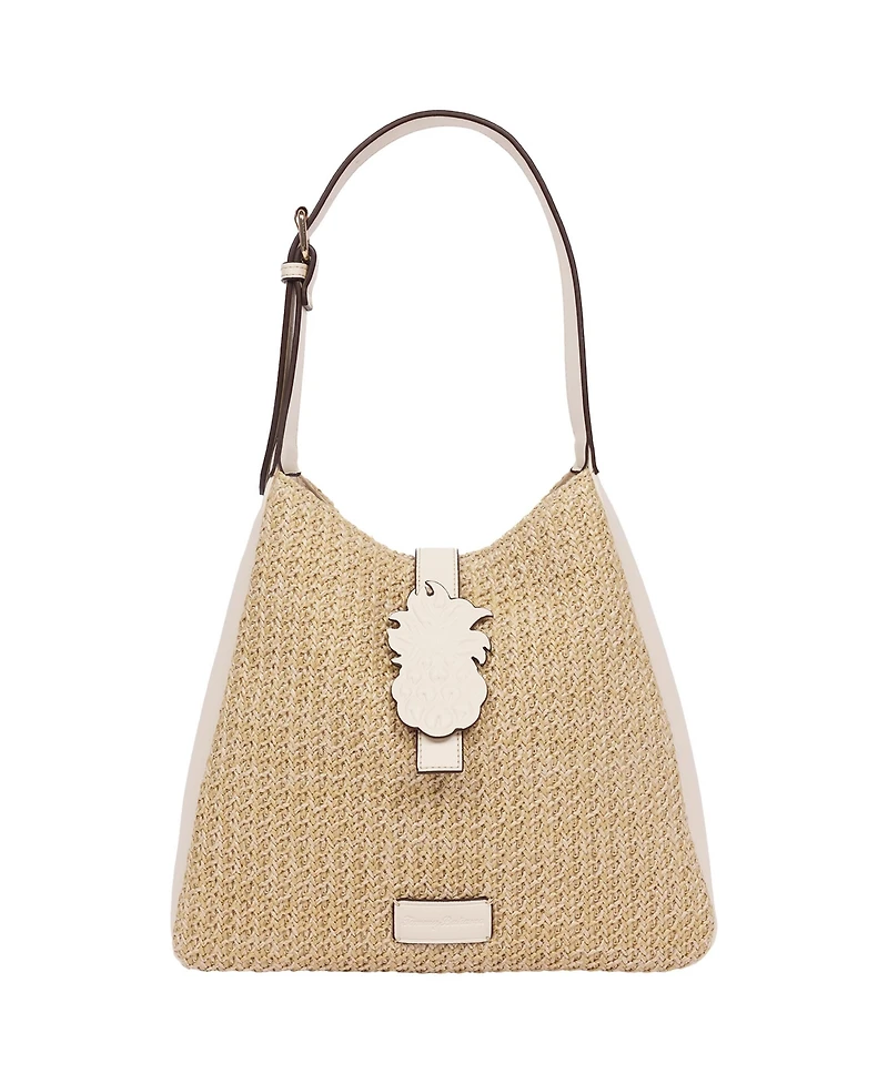 Tommy Bahama Logo Tab Raffia Hobo Bag – Woven Straw Shoulder Bag with Pineapple Accent