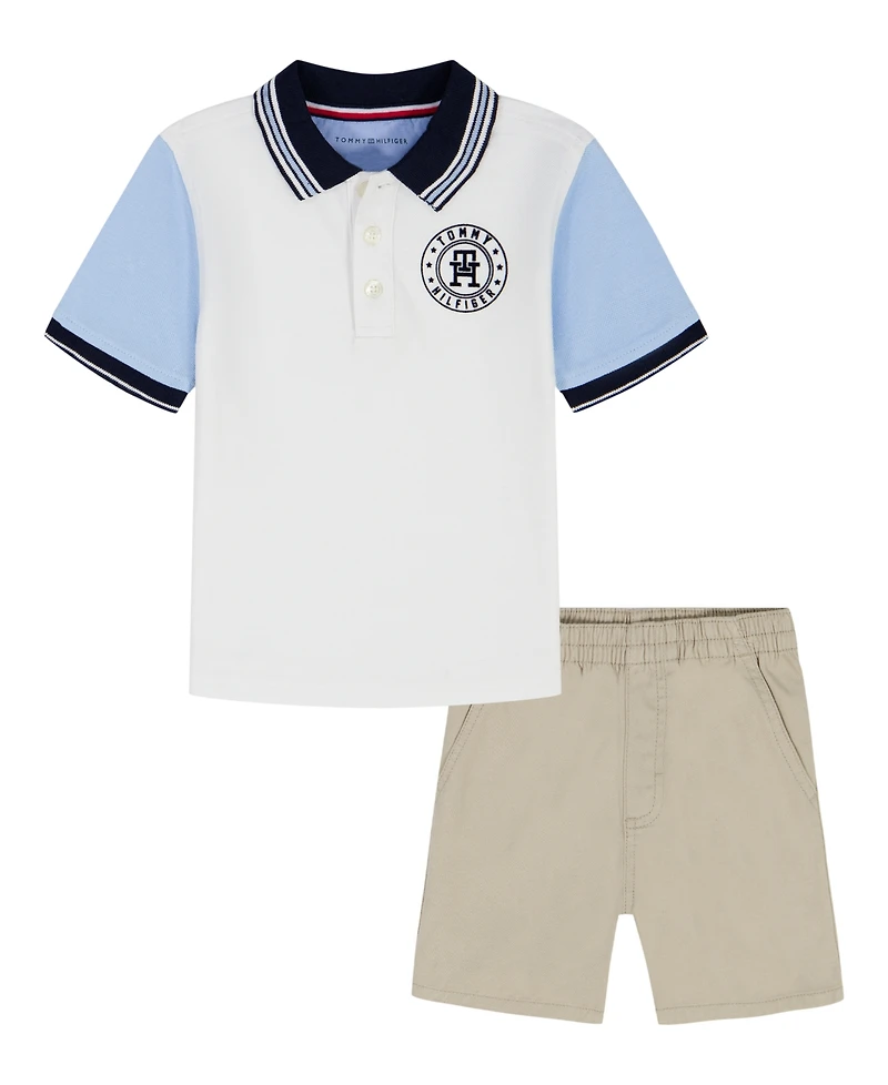 Tommy Hilfiger Boys' 2T-7 Ribbed Polo Shirt and Shorts, 2-Piece Set