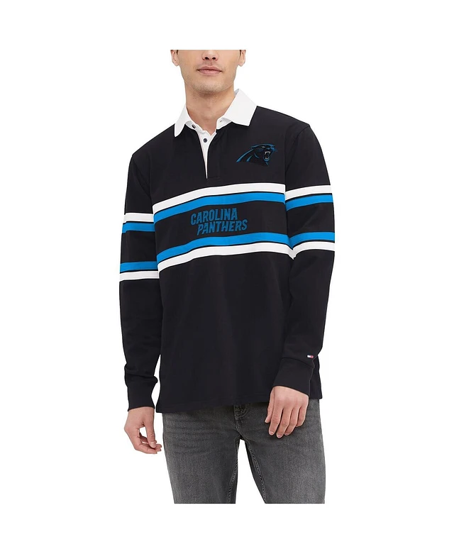 Tommy Hilfiger Men's Black Carolina Panthers Cory Varsity Rugby Long Sleeve T-Shirt