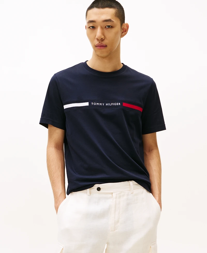 Elevate your wardrobe with this versatile staple from Tommy Hilfiger. Crafted to flatter and fit just right, this short sleeve T-shirt is a must-have for every style-conscious individual. Made from all-cotton, it offers supreme comfort. Featuring the iconic linear flag Tommy Hilfiger logo across the chest, this T-shirt effortlessly embodies the brand's timeless aesthetic.