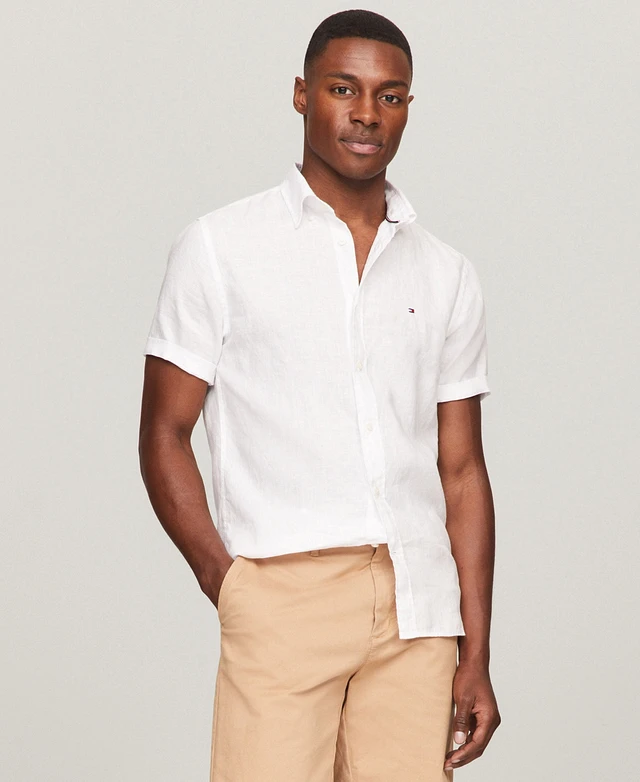Tommy Hilfiger Men's Short Sleeve Button-Down Linen Shirt