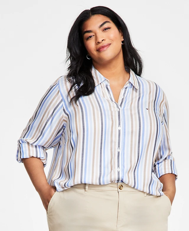 Tommy Hilfiger Plus Size Striped Roll-Tab Shirt