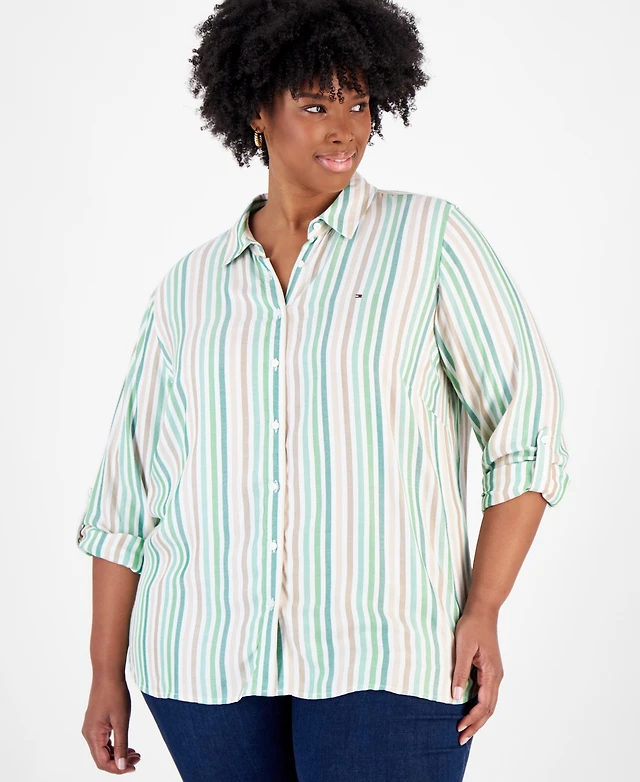 Tommy Hilfiger Plus Size Striped Roll-Tab Shirt