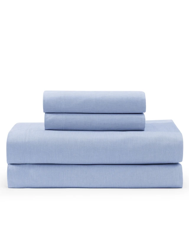 Tommy Hilfiger Solid 144-Thread Count Cotton Chambray Washed -Pc. Sheet Set