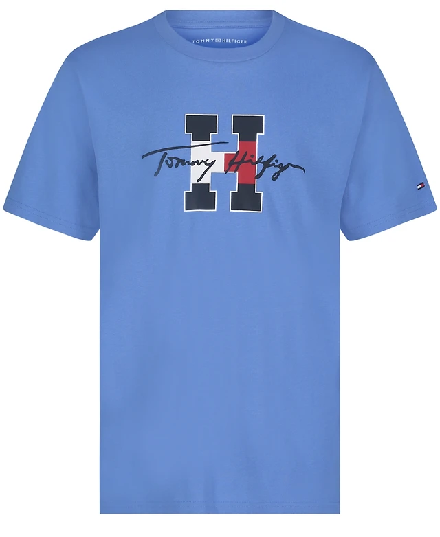 Tommy Hilfiger Big Boys Angled Script Print Short Sleeve T-Shirt