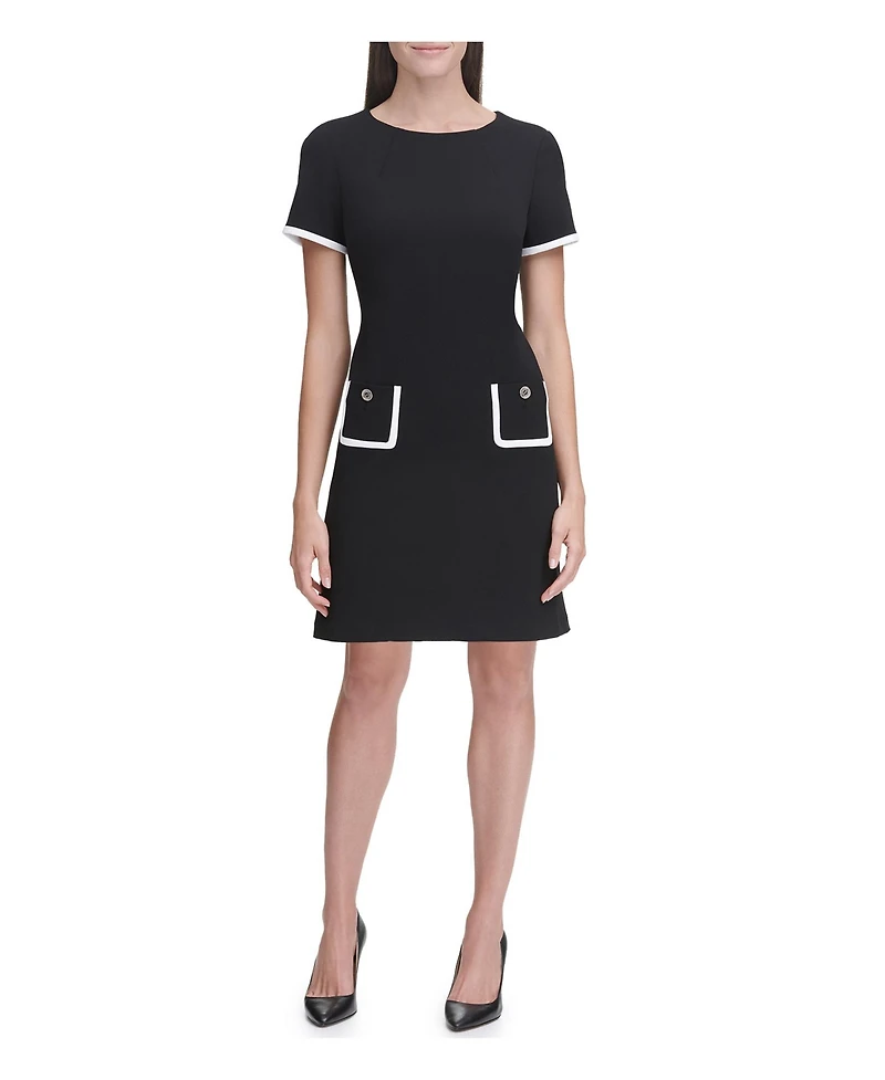Two buttoned pockets at the front pop with colorblocked trim on this sleek sheath dress from Tommy Hilfiger.