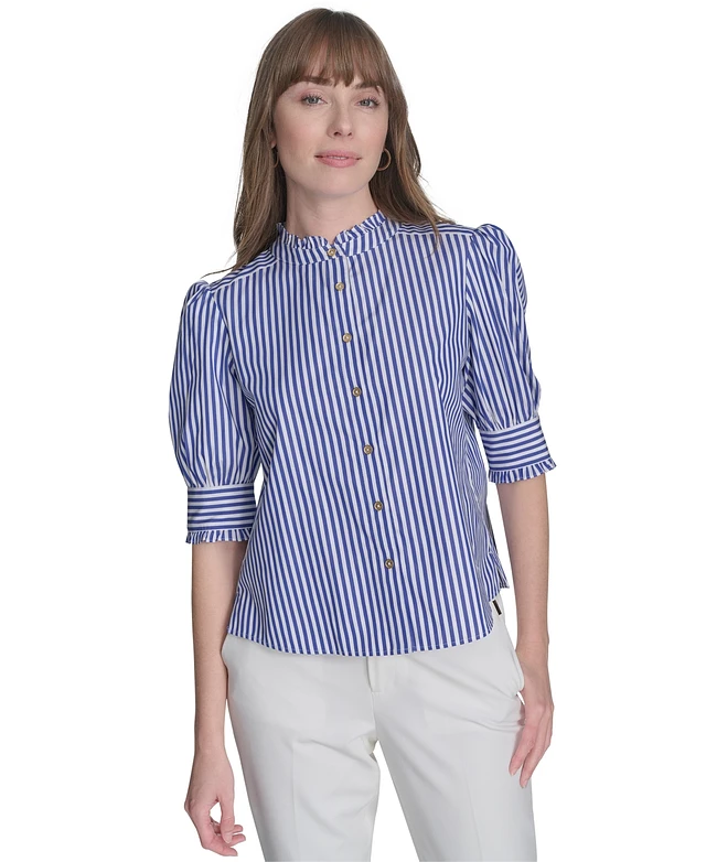 Tommy Hilfiger Women's Cotton Striped Puff-Sleeve Blouse