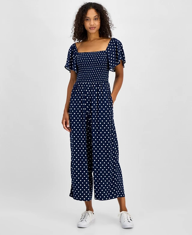 Tommy Hilfiger Women's Flutter-Sleeve Polka Dot Jumpsuit