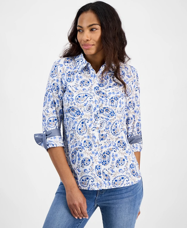 Tommy Hilfiger Women's Paisley-Print Roll-Tab Cotton Shirt