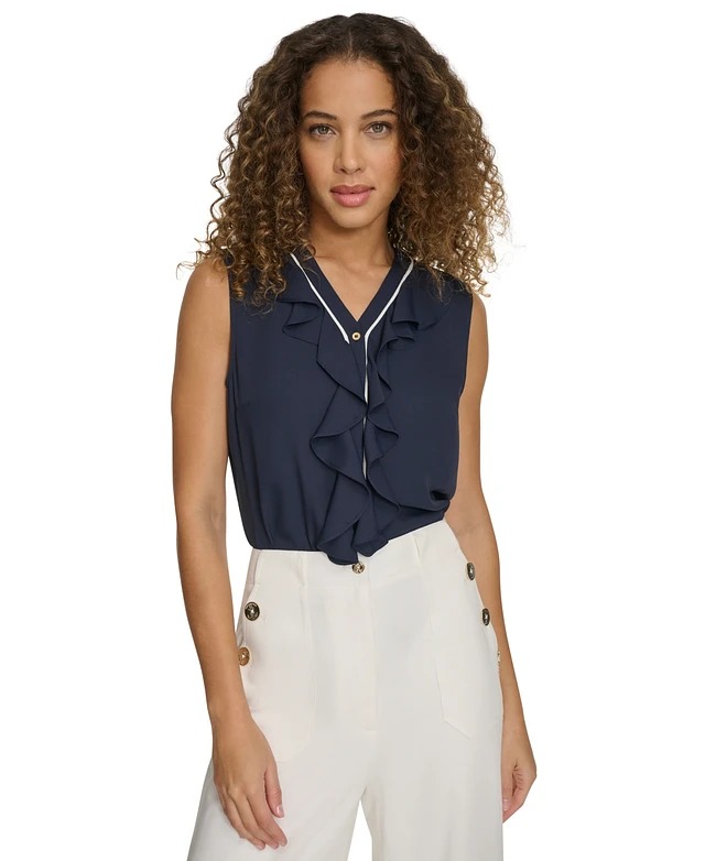 Tommy Hilfiger Women's Sleeveless Button-Front Ruffled Blouse