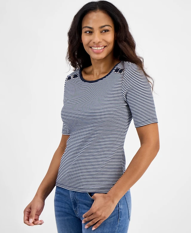 Tommy Hilfiger Women's Striped Cotton Lace-Up Top