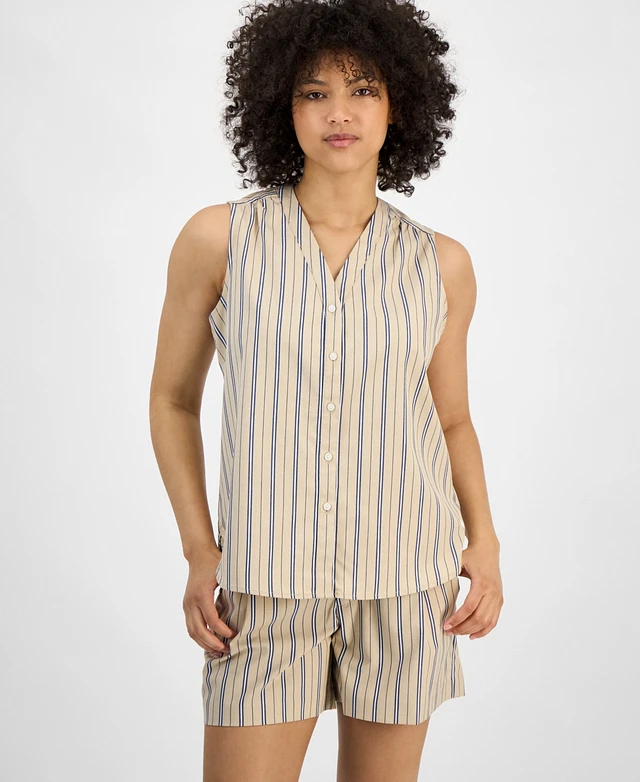 Tommy Hilfiger Women's Striped Sleeveless V-Neck Shirt