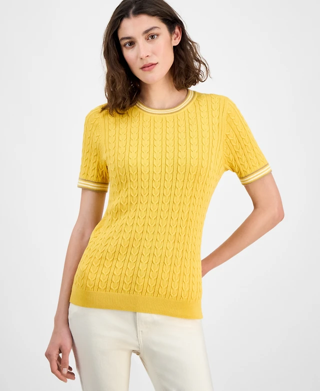 Tommy Hilfiger Women's Tipped Short-Sleeve Sweater