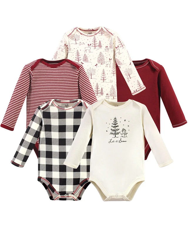 Touched by Nature Baby Boys Cotton Long-Sleeve Bodysuits 5pk, Winter Woodland, 18-24 Months