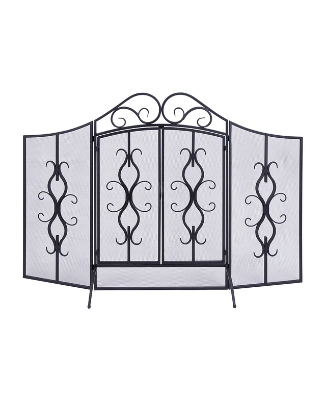 Streamdale Darcie Wrought Iron Fireplace Screen, Black Finish with Ornate Design