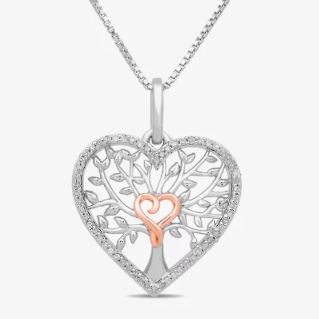 Tree Of Life Womens 1/10 CT. T.W. Natural White Diamond 14K Two Tone Gold Over Silver Sterling Silver Heart 18 Inch Pendant Necklace
