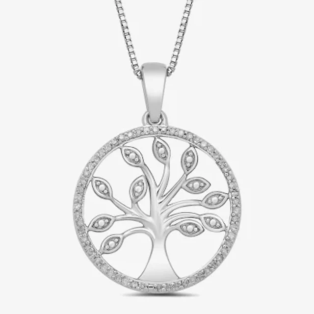 Tree Of Life Womens 1/10 CT. T.W. Natural White Diamond Sterling Silver 18 Inch Pendant Necklace