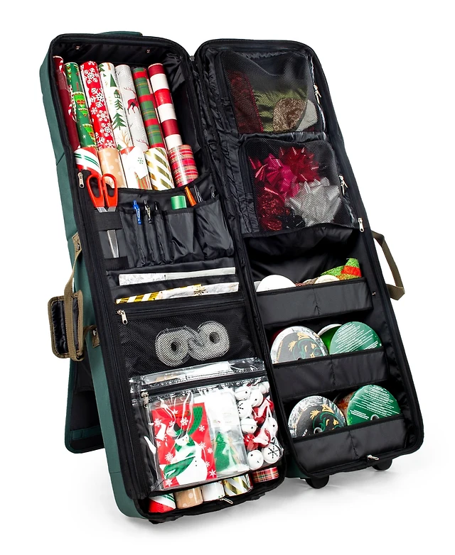 Hearth & Harbor Wrapping Paper Storage Container - Christmas Bag with Interior Pockets