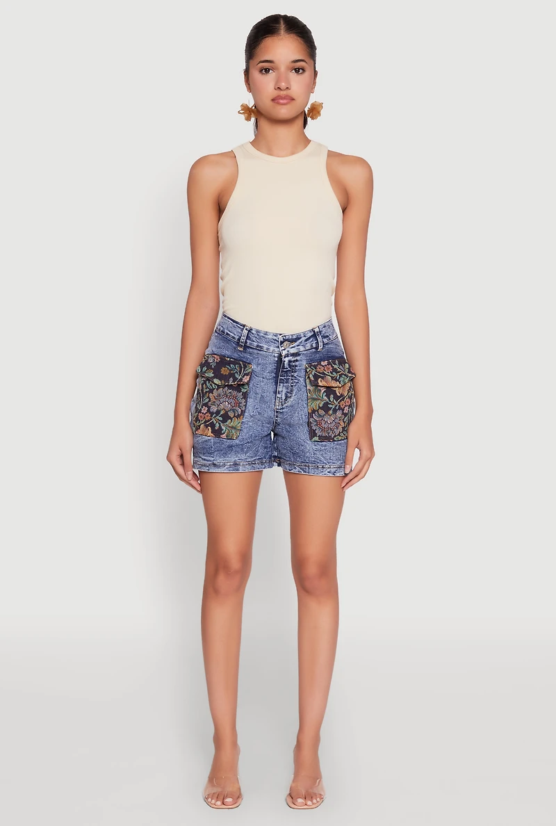 Trendy Floral Jacquard Cargo Pocket Denim Shorts in San Juan, PR