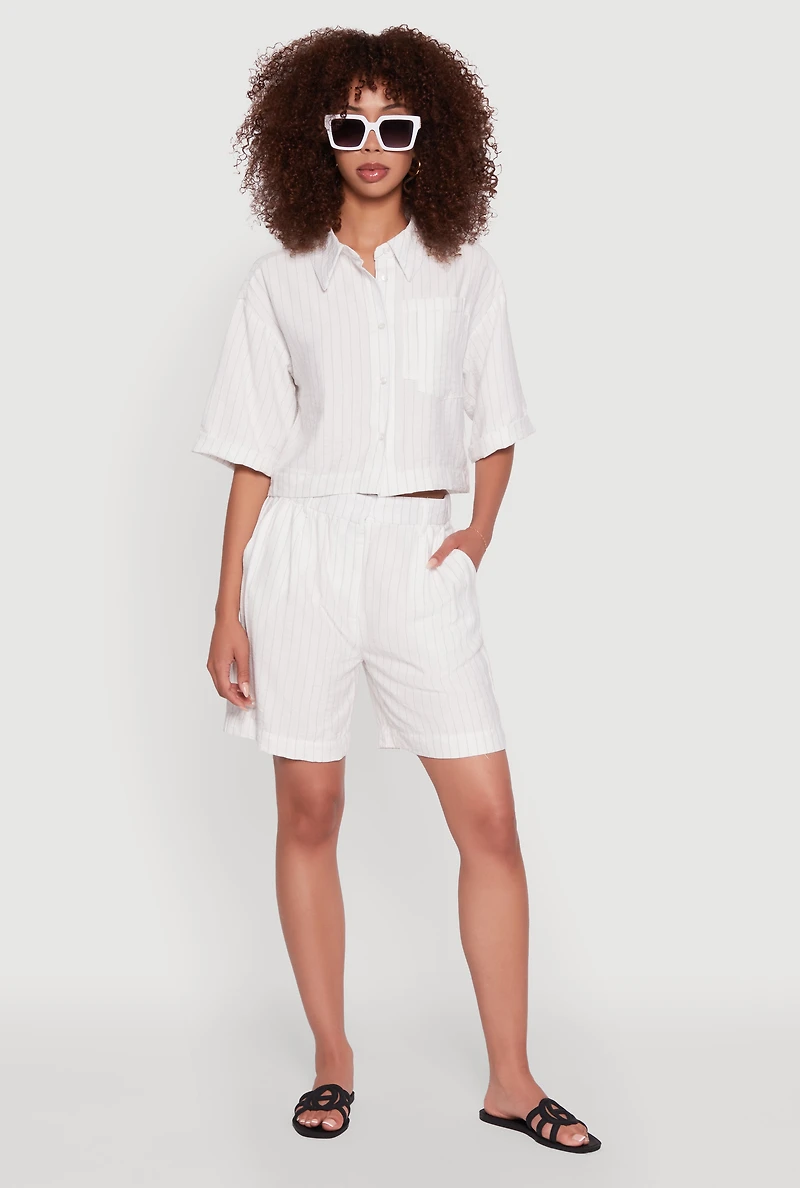 Trendy High Waisted Pinstripe Crepe Knit Shorts in San Juan, PR
