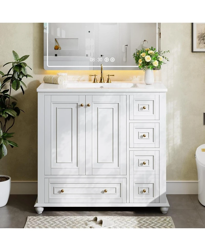 Tribesigns 36-Inch Bathroom Vanity with Ceramic Sink Combo, Freestanding Bathroom Storage Vanity Cabinet with 2 Doors & 4 Drawers And Undermount Sink in San Juan, PR