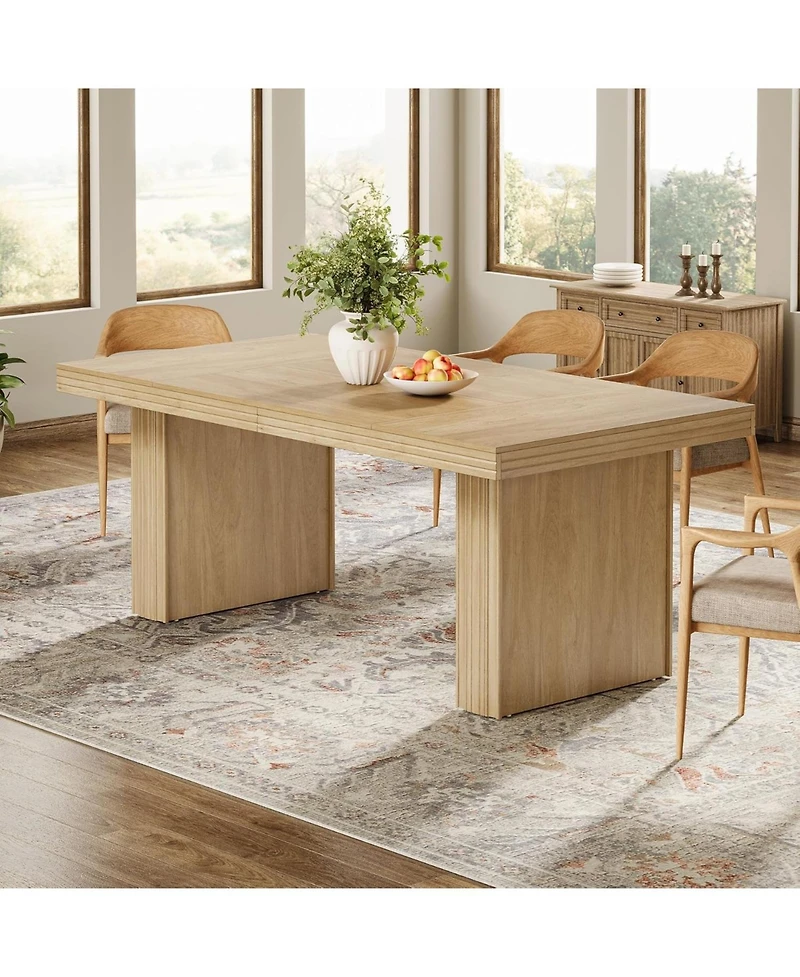 The table has a substantial weight of 98.3 lb and supports up to 200 lb, providing dependable stability for everyday use.The fluted design and warm finish add modern farmhouse appeal, making it suitable for kitchens, dining rooms, or living areas. It also includes an 18-month warranty.Seating Capacity: 4-6 people