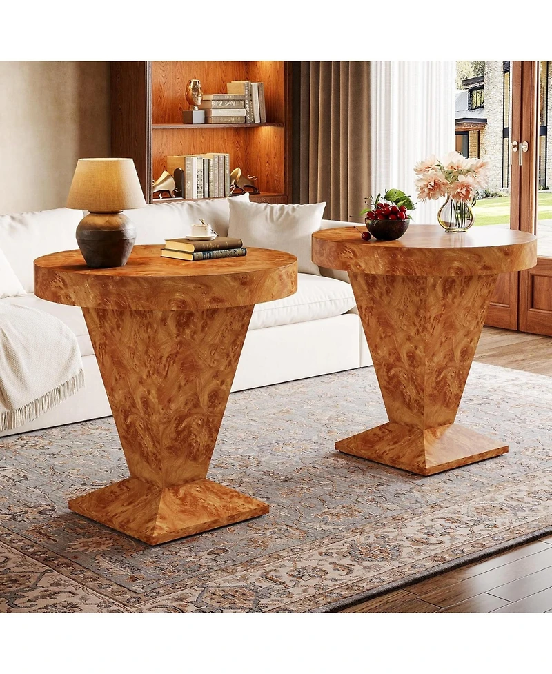 Tribesigns Round Side Table Set of 2, 23.62-Inch Pedestal End Table