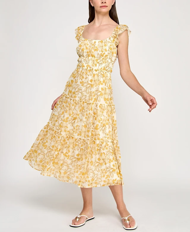 Trixxi Juniors' Chiffon Printed Flutter-Sleeve Midi Dress