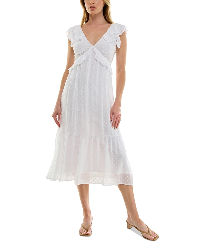 Trixxi Juniors' Clip-Dot Flutter-Sleeve Midi Dress