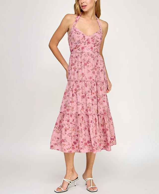 Trixxi Juniors' Printed Sleeveless Halter Midi Dress