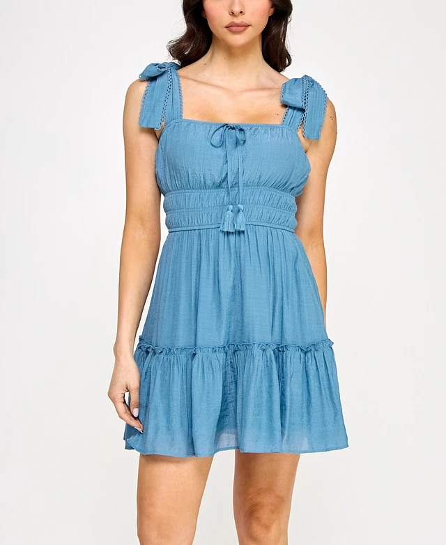 Trixxi Juniors' Square-Neck Tie-Strap Fit & Flare Dress