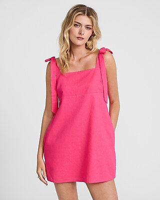 Linen-Blend Square Neck Tie Strap Mini Shift Dress