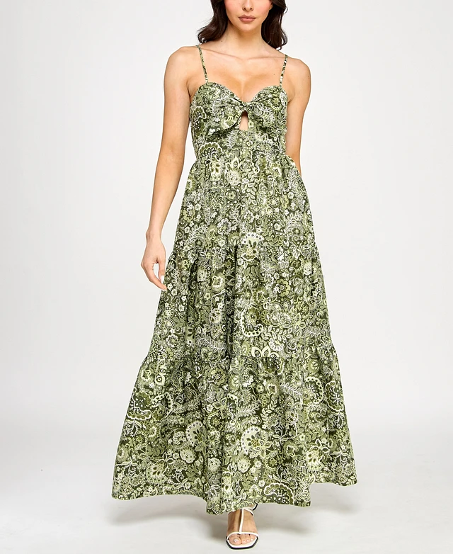 Trixxi Juniors' Tie-Bust Keyhole-Cutout Paisley-Print Maxi Dress