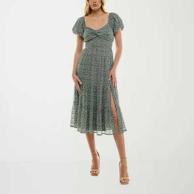 Trixxi Womens Short Sleeve Midi Fit + Flare Dress Juniors