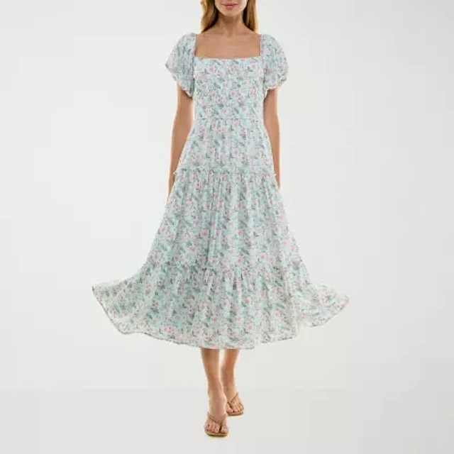 Trixxi Womens Short Sleeve Midi Floral Juniors A-Line Dress
