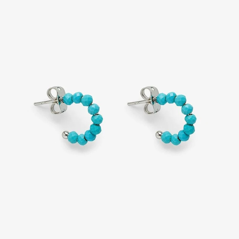 Features:- Brass base with rhodium plating & turquoise beads.- Sterling silver posts.- Inside diameter of hoop earrings: 11mm.