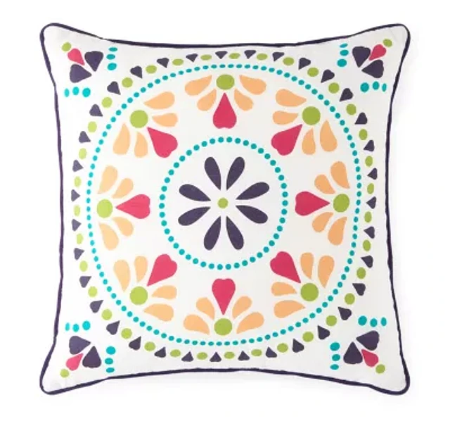 Tonal Feather Filled Medalion Square Throw Pillow